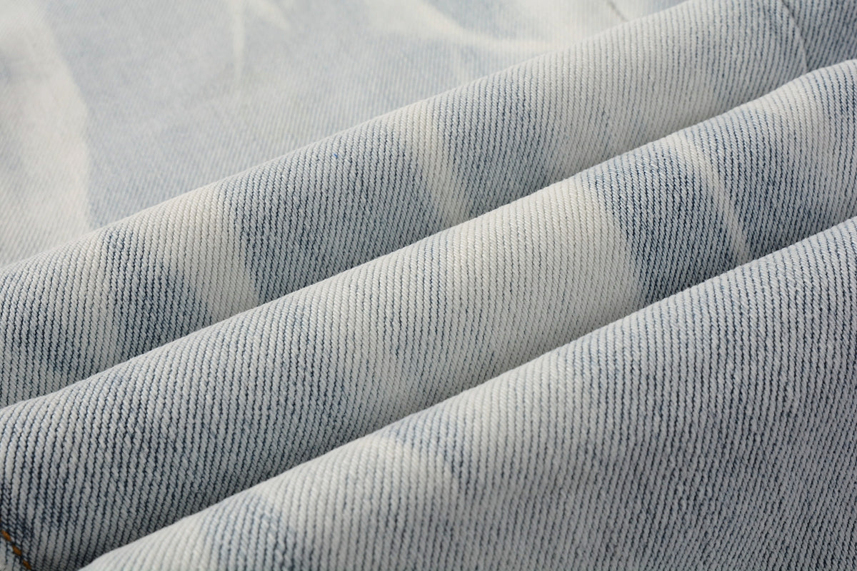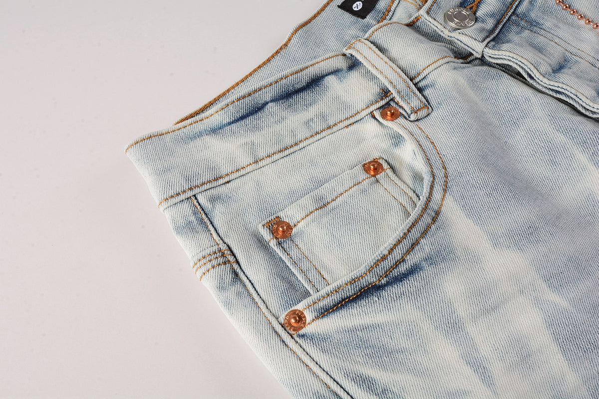 PURPLE Men Streetwear Skinny Jeans Light Blue Wash with White Brushstroke Texture 7017