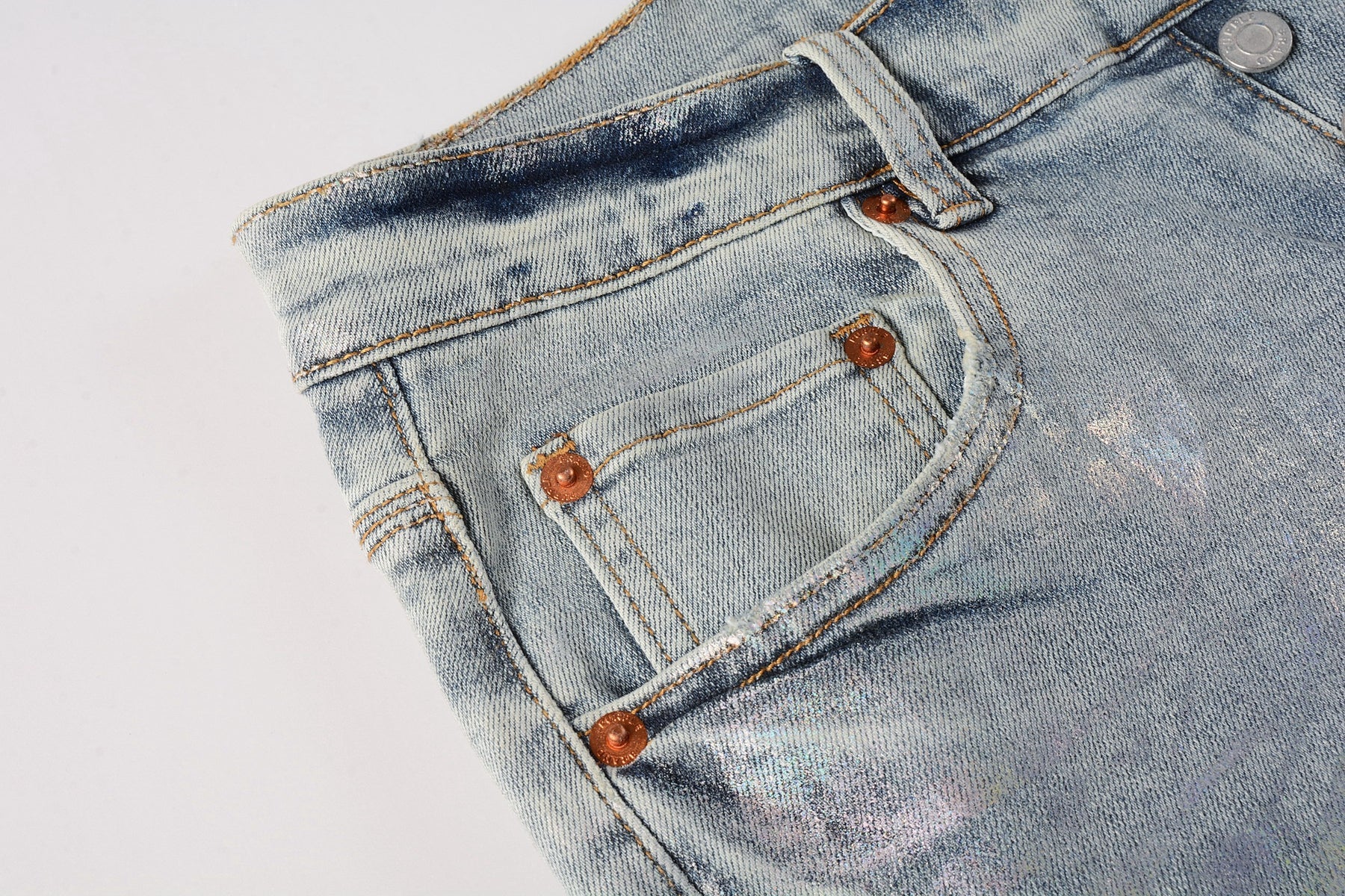 PURPLE Men Streetwear Skinny Jeans Light Blue Wash with Holographic Iridescent Finish 9005