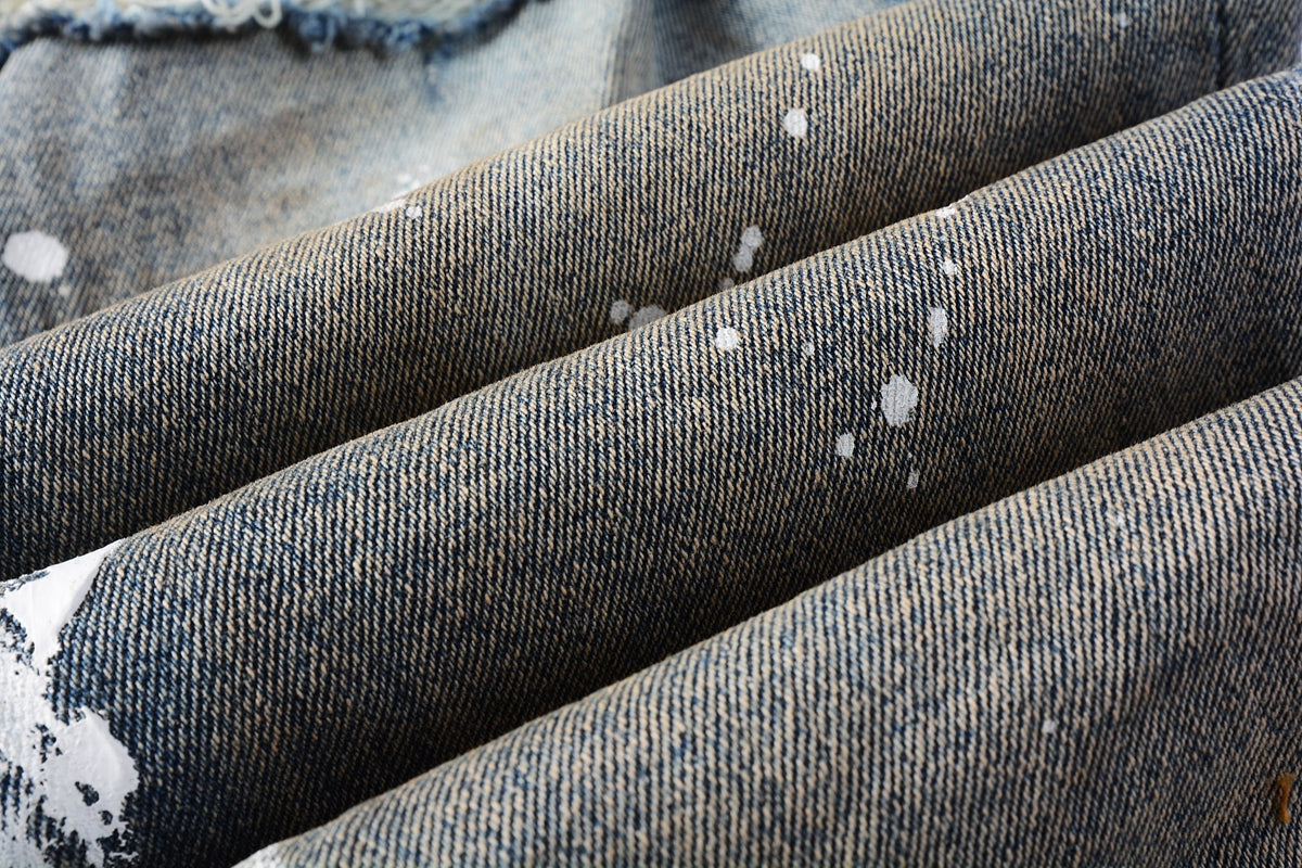 PURPLE Men Streetwear Skinny Jeans Light Blue Wash with Distressed Rips and White Paint Splatter 9012