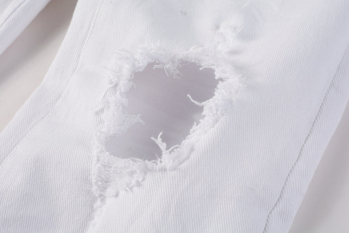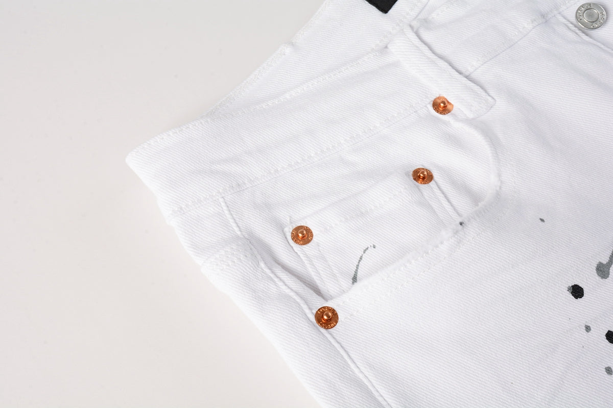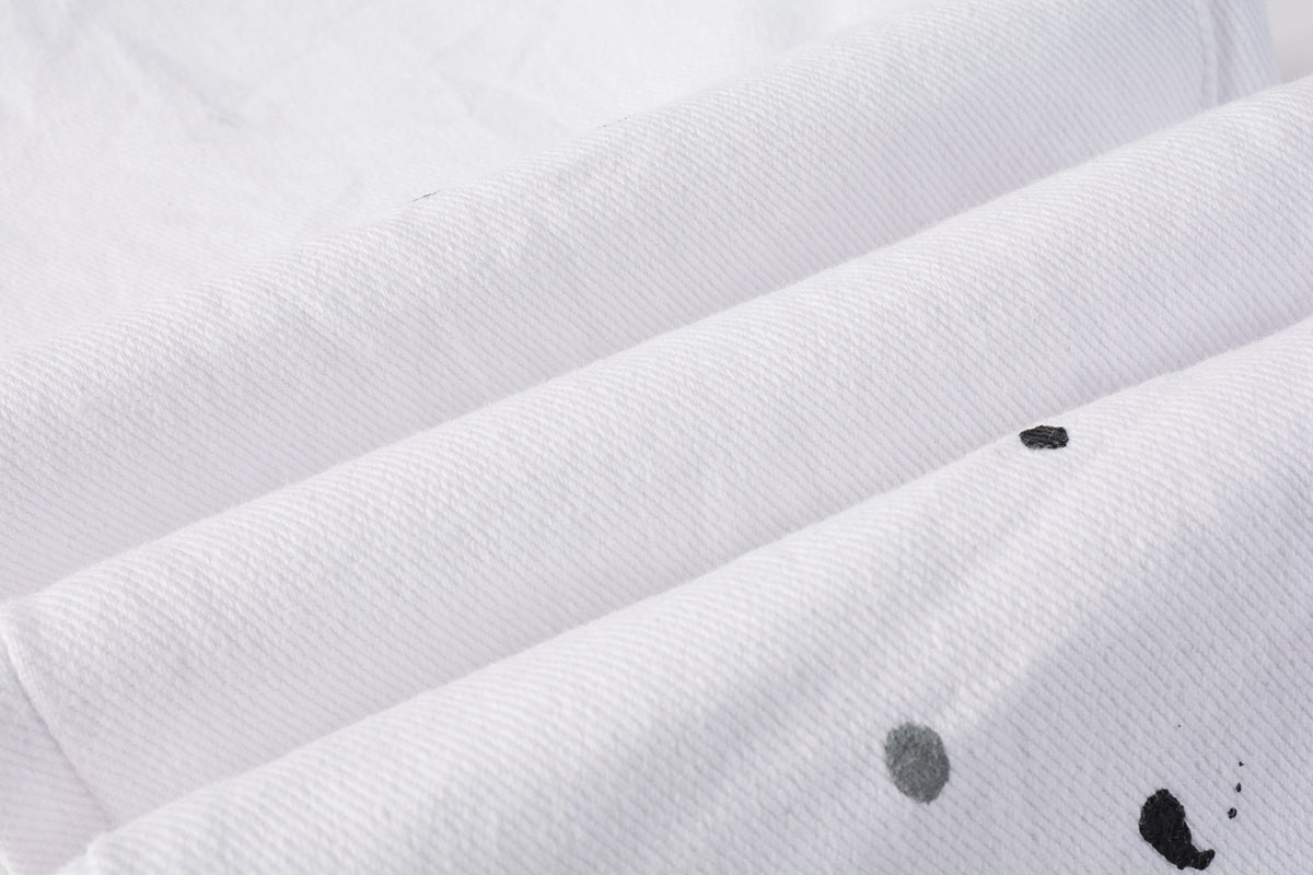 PURPLE Men Streetwear Skinny Jeans White Wash with Black Paint Splatter and Distressed Rip 9021