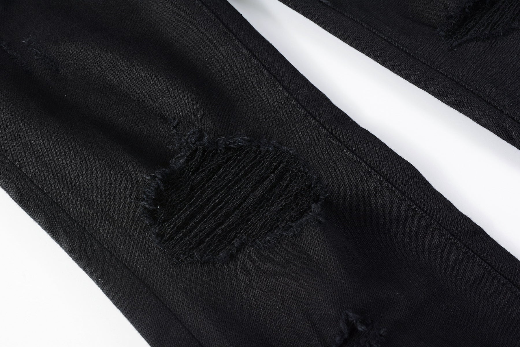 PURPLE Men Streetwear Skinny Jeans Black Wash with Distressed Rip Details 9022