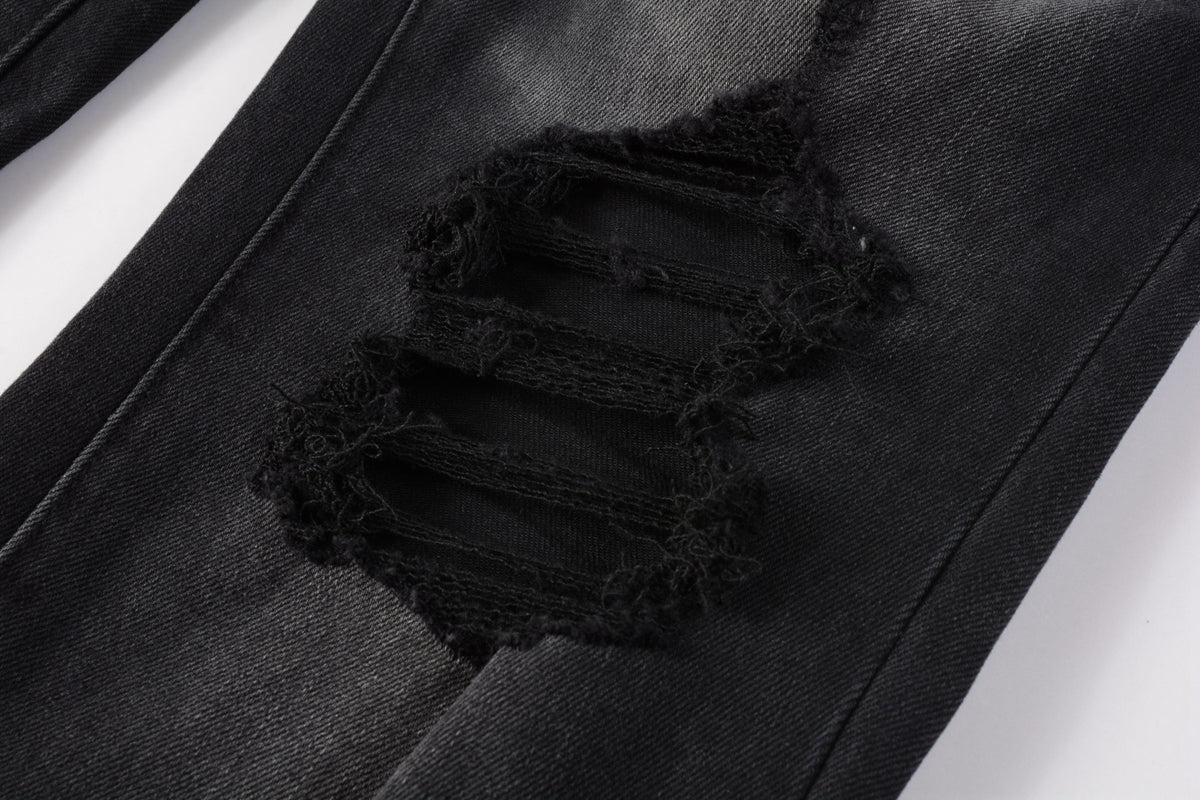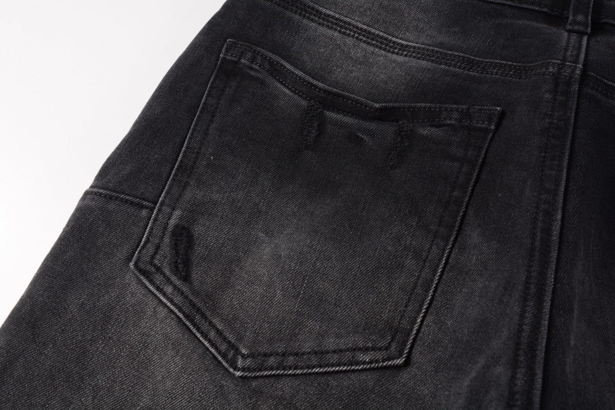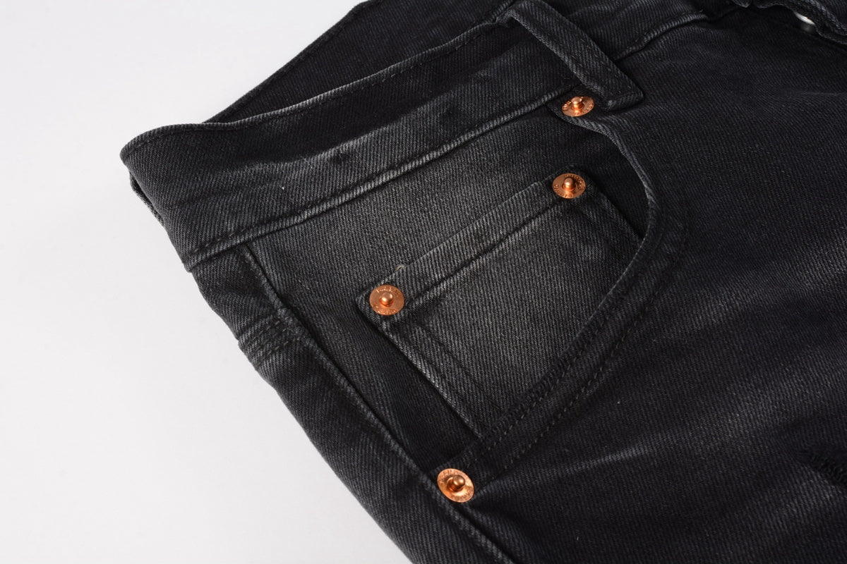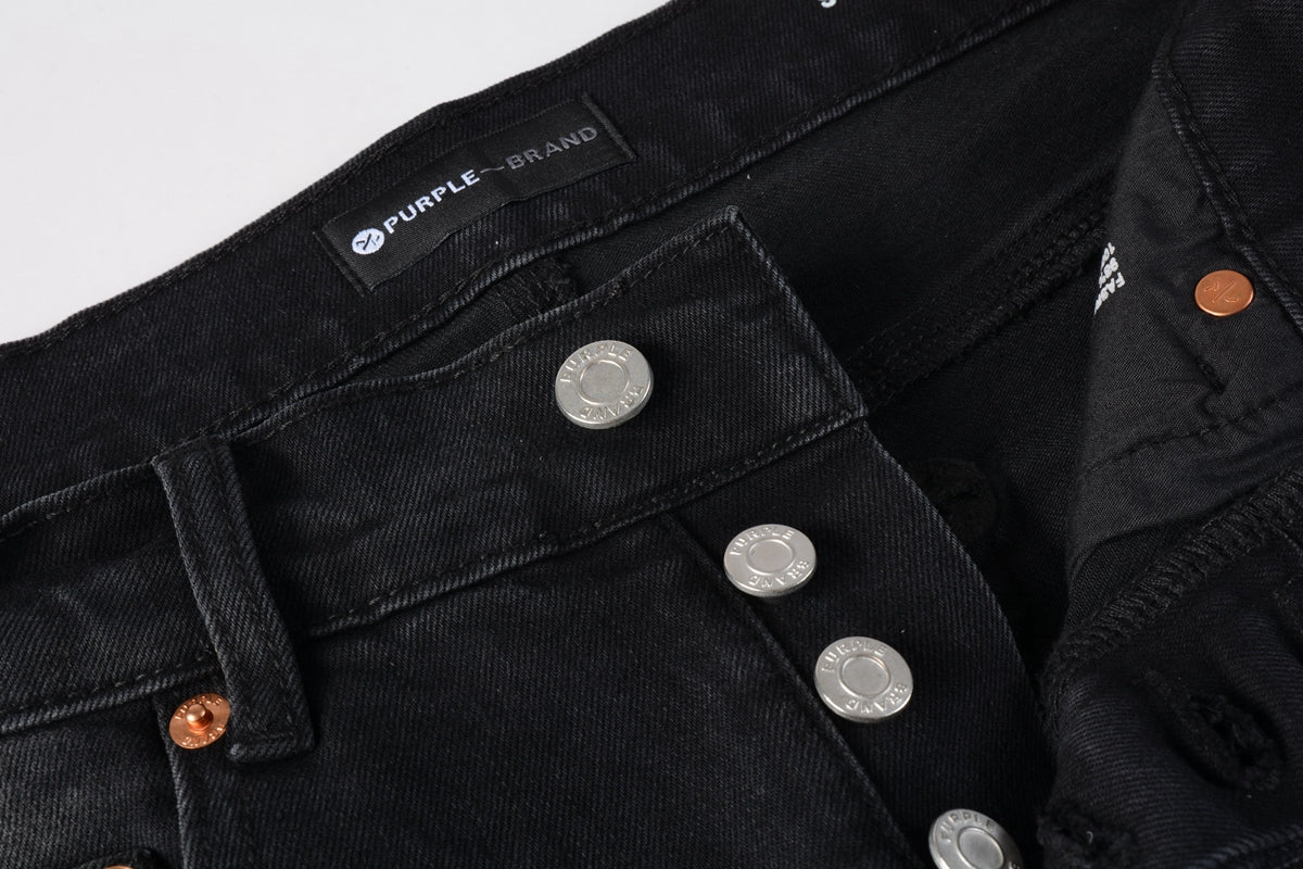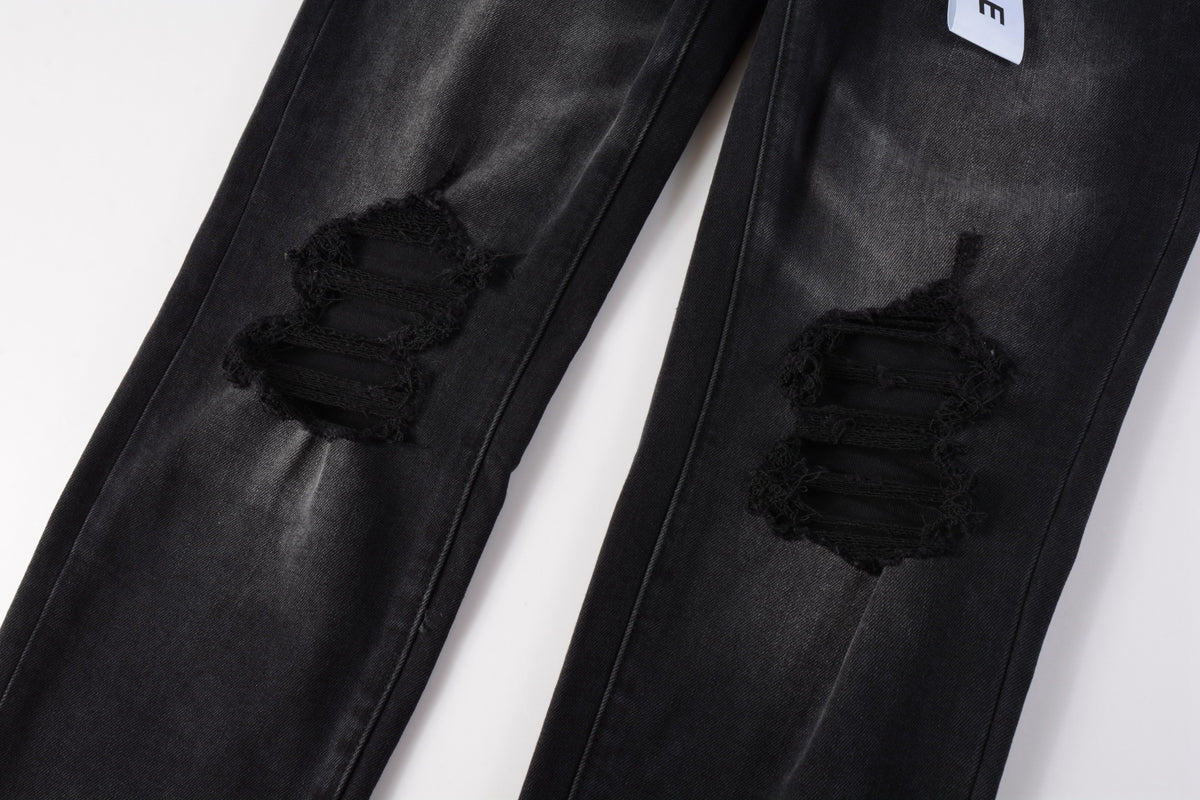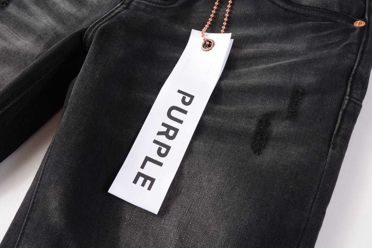 PURPLE Men Streetwear Skinny Jeans Black Wash with Knee Ripped Details 9029