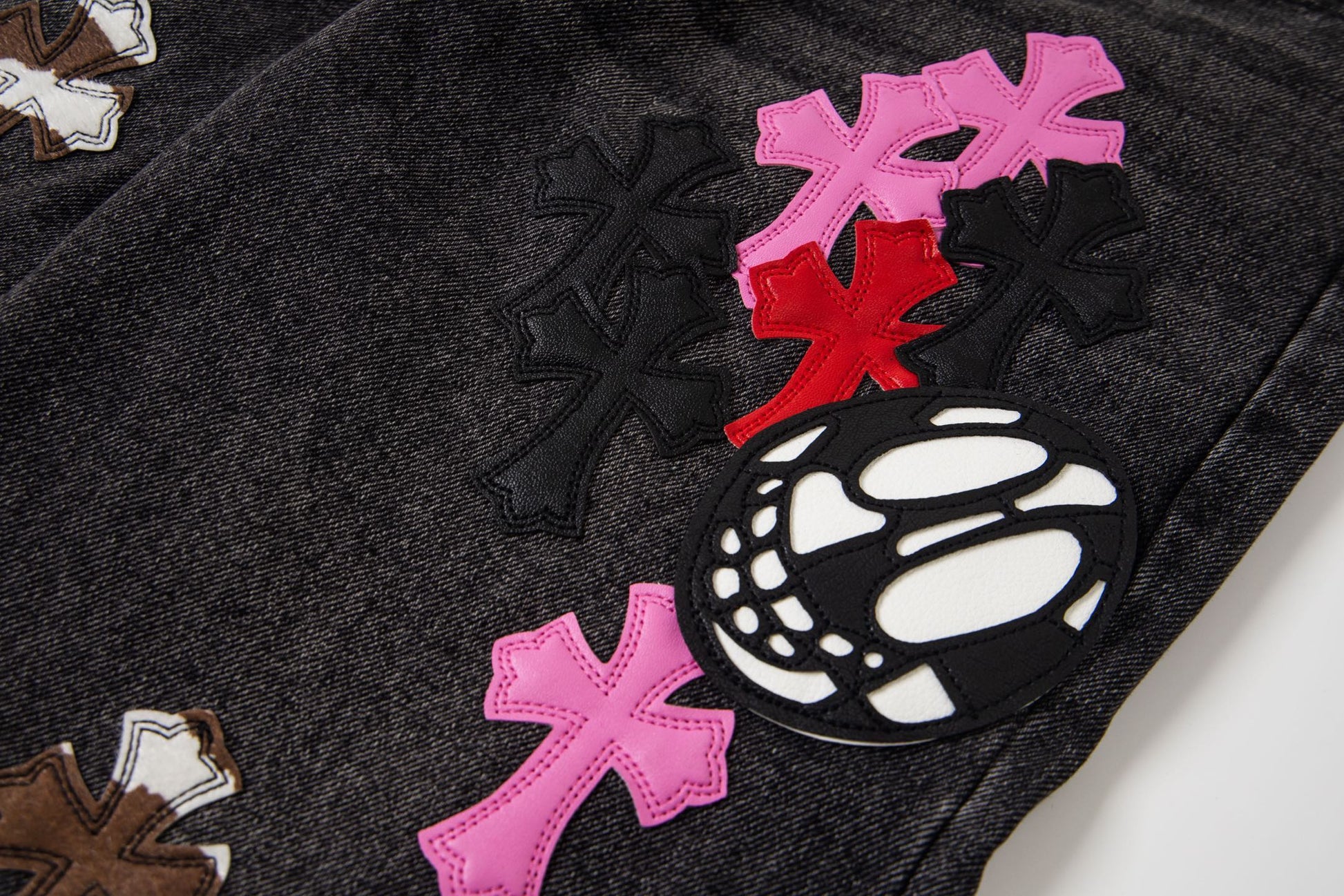 Chrome-Hearts Multi Cross Patch Denim Jeans - Grey Gothic Street Pants 1111