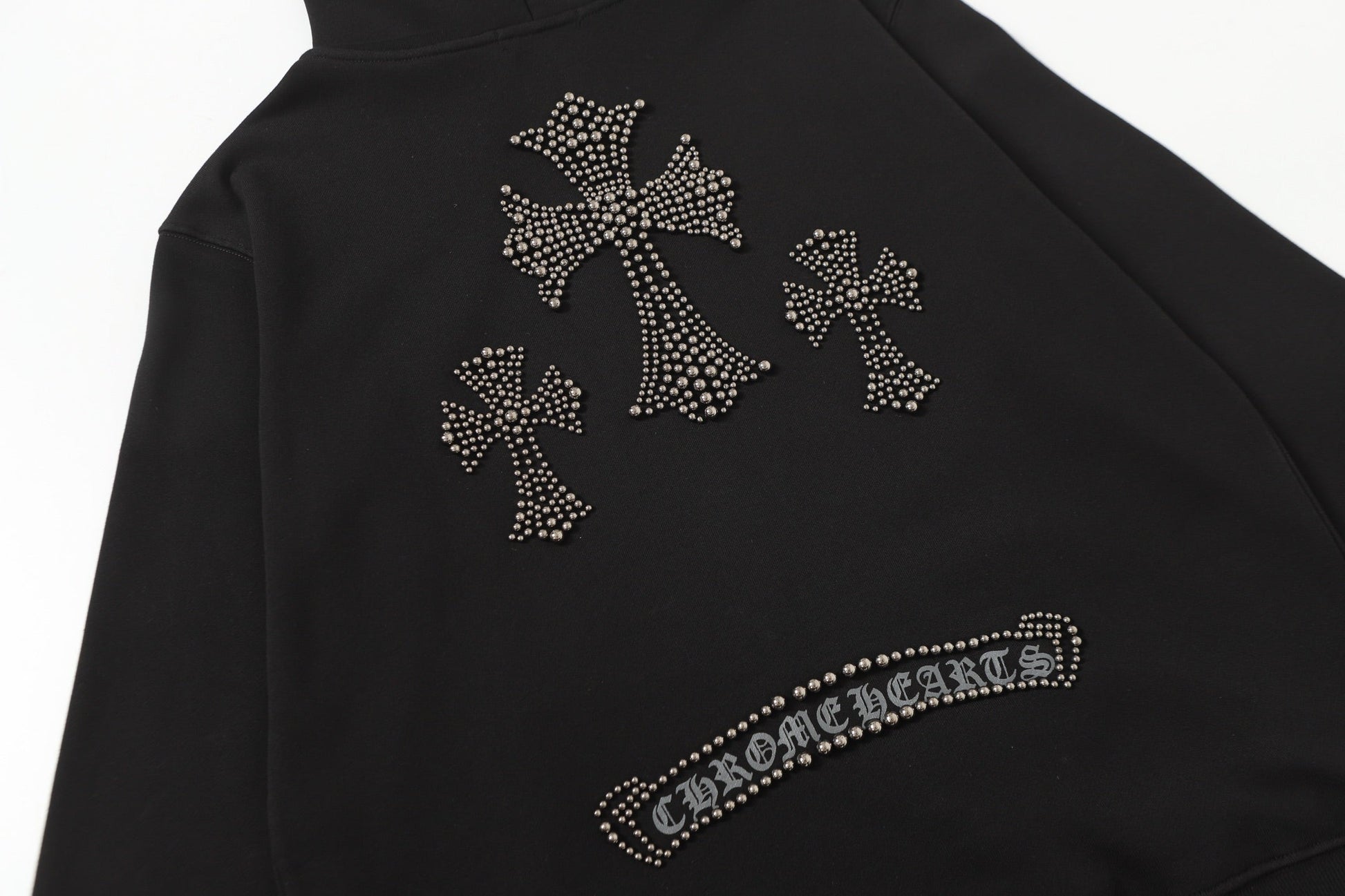 Chrome-Hearts Rhinestone Cross Hoodie - Black Gothic Streetwear Sweatshirt 2633