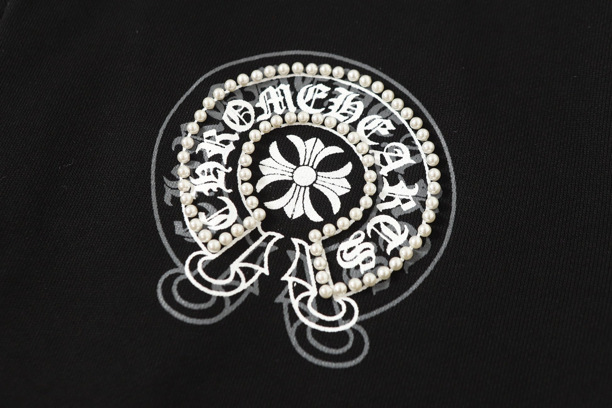 Chrome-Hearts Rhinestone Horseshoe Hoodie - Black Gothic Streetwear Sweatshirt 2601