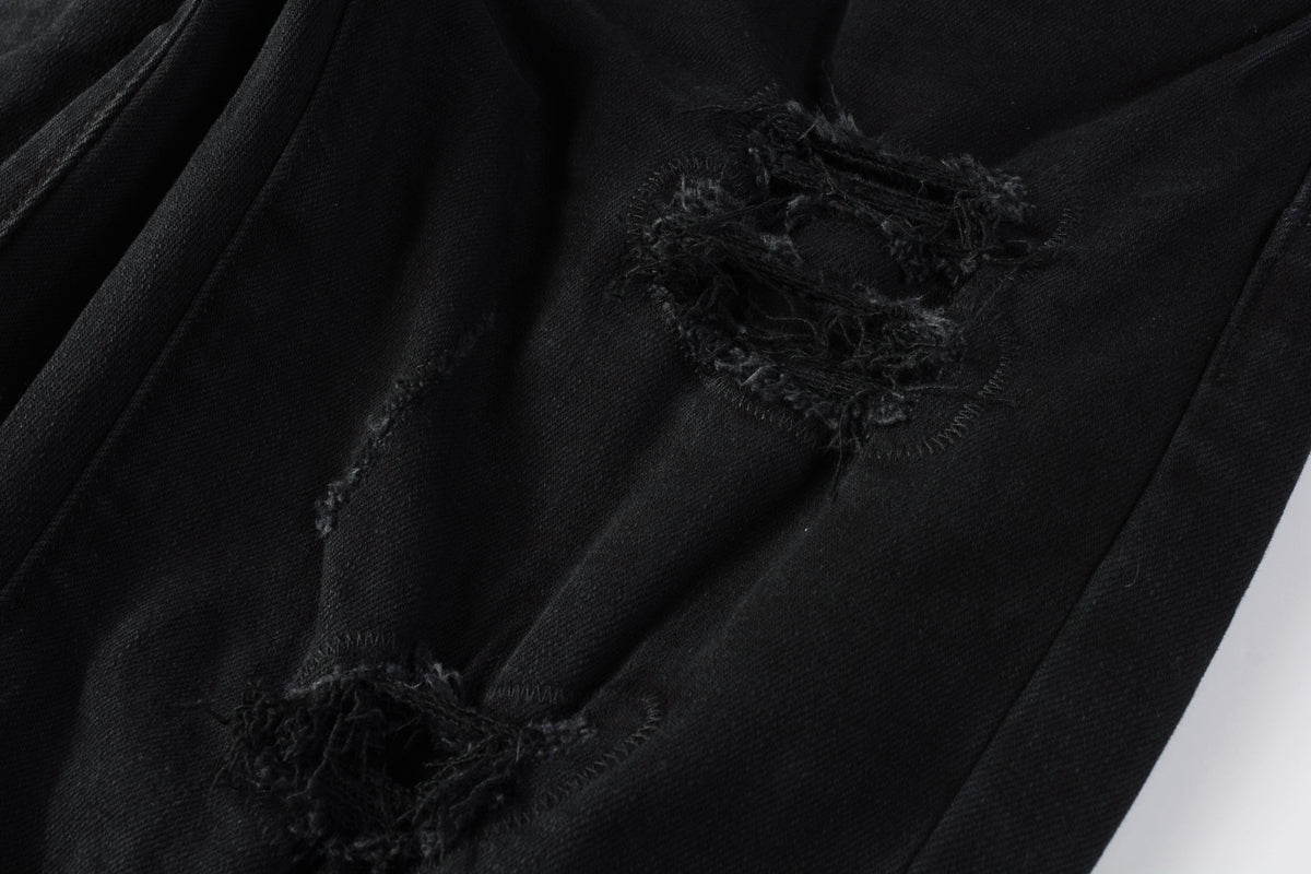 PURPLE Men Distressed Black Skinny Jeans with Heavy Ripped Design and Grunge Streetwear Vibe 9108