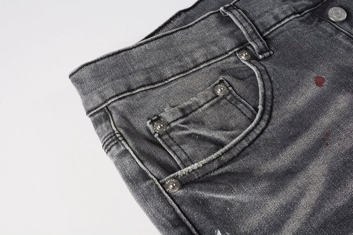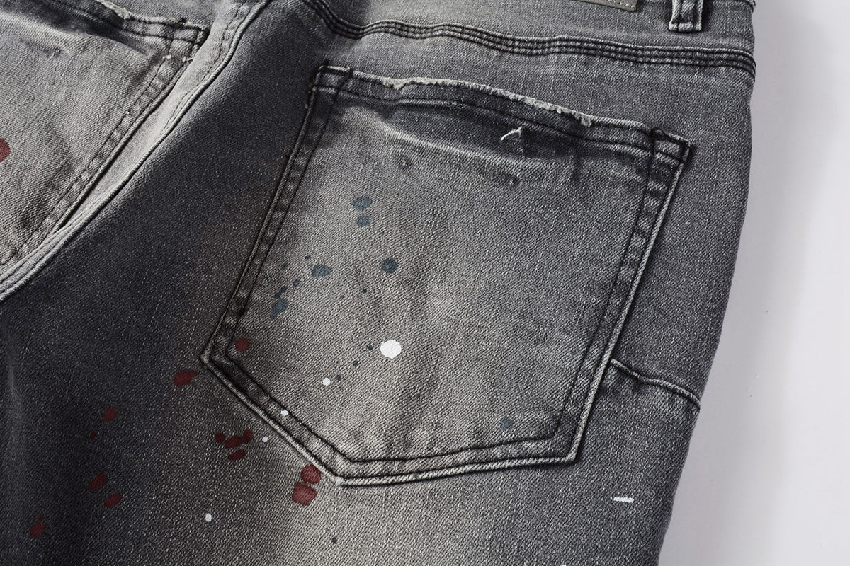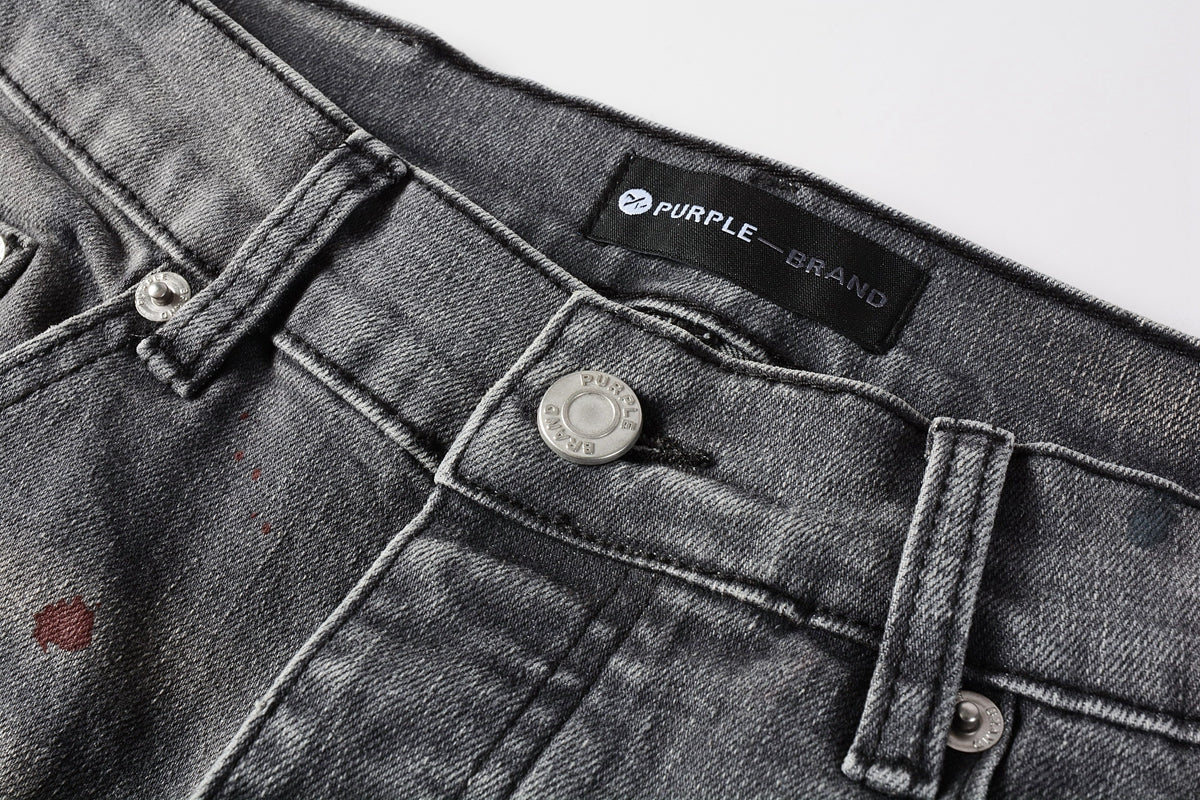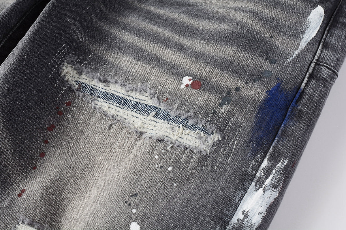 PURPLE Men Streetwear Distressed Grey Skinny Jeanswith Color Paint Splatter and Knee Rips 9107