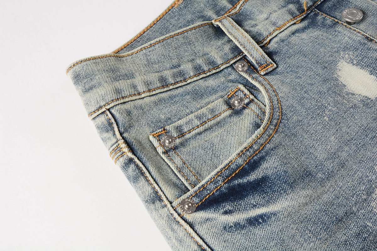 PURPLE Men Streetwear Jeans Distressed Light Blue Paint Dot Ripped skinny 9092