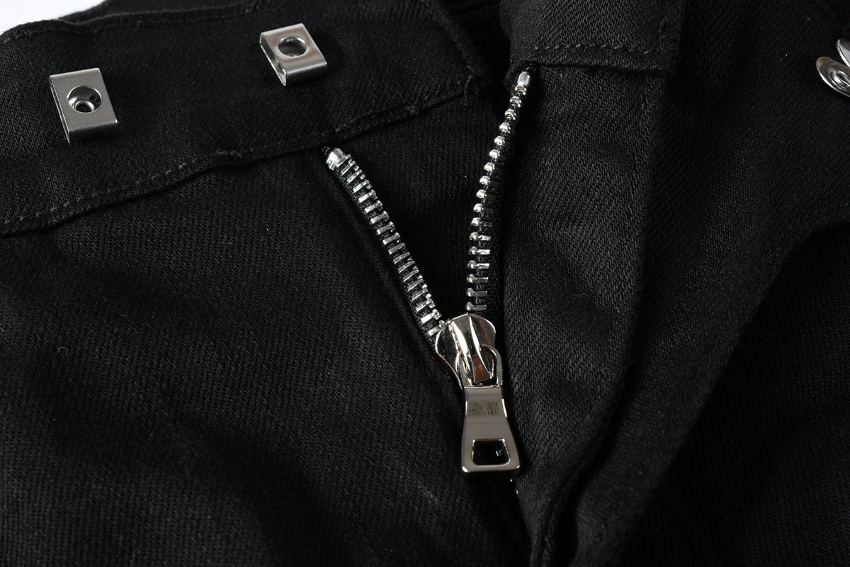 PURPLE Men Streetwear Biker Skinny Jeans Black with Knee Pleats and Zipper Pockets 0964