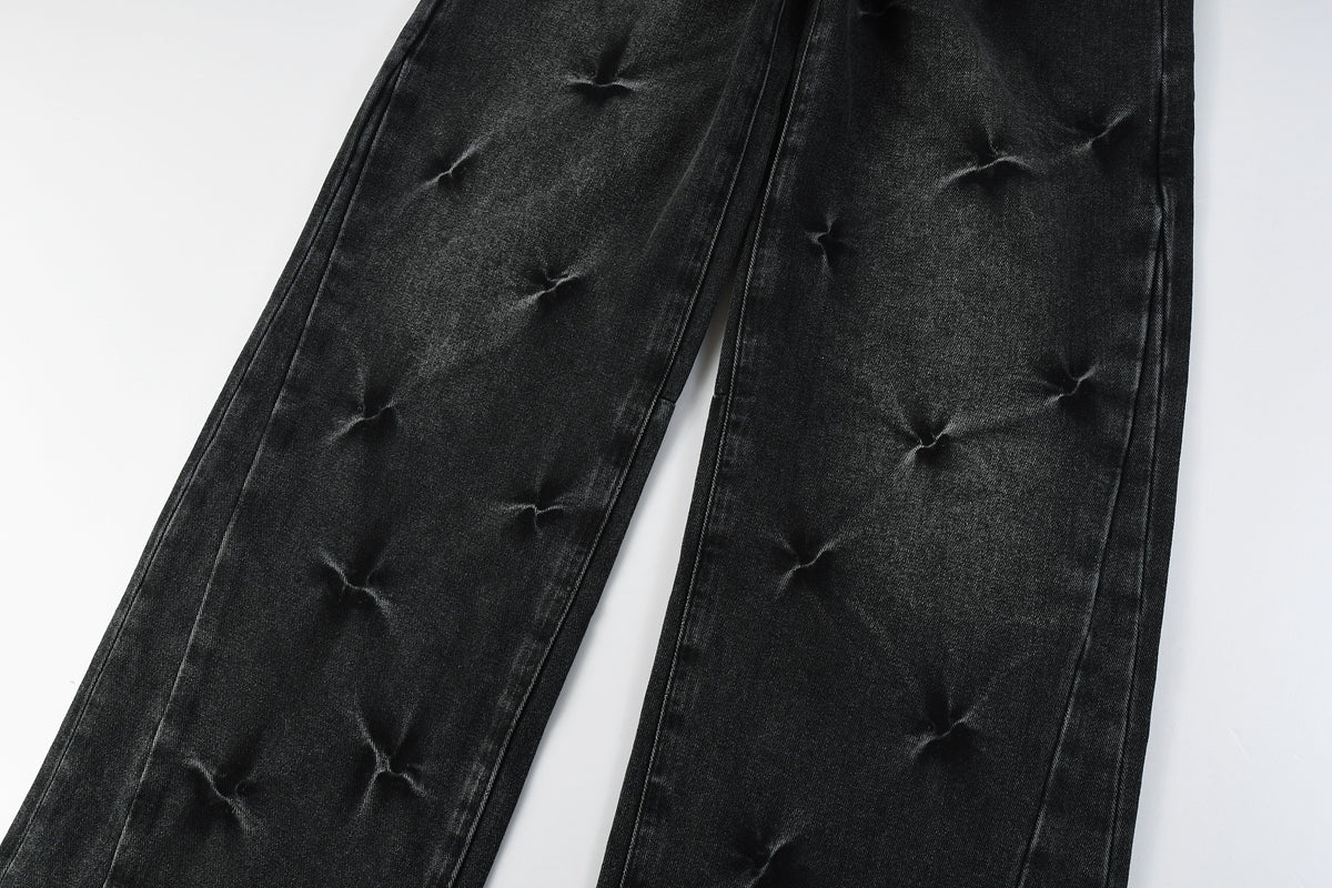 PURPLE Men Streetwear Wide-Leg Jeans Black Gray Wash with 3D Pinched Pleats