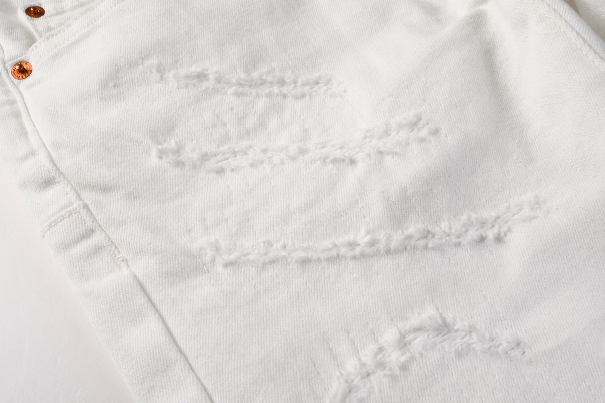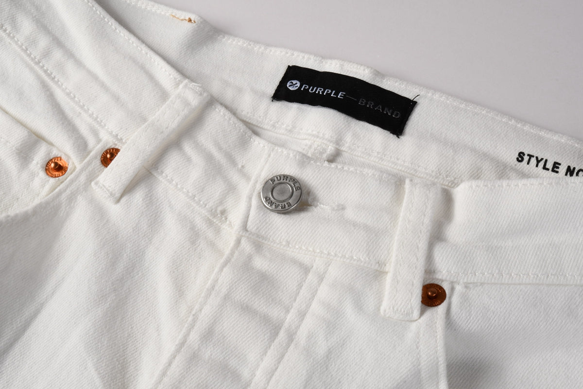 PURPLE Men Classic Streetwear Skinny Jeans Solid White with Subtle Distressed Details PU9118