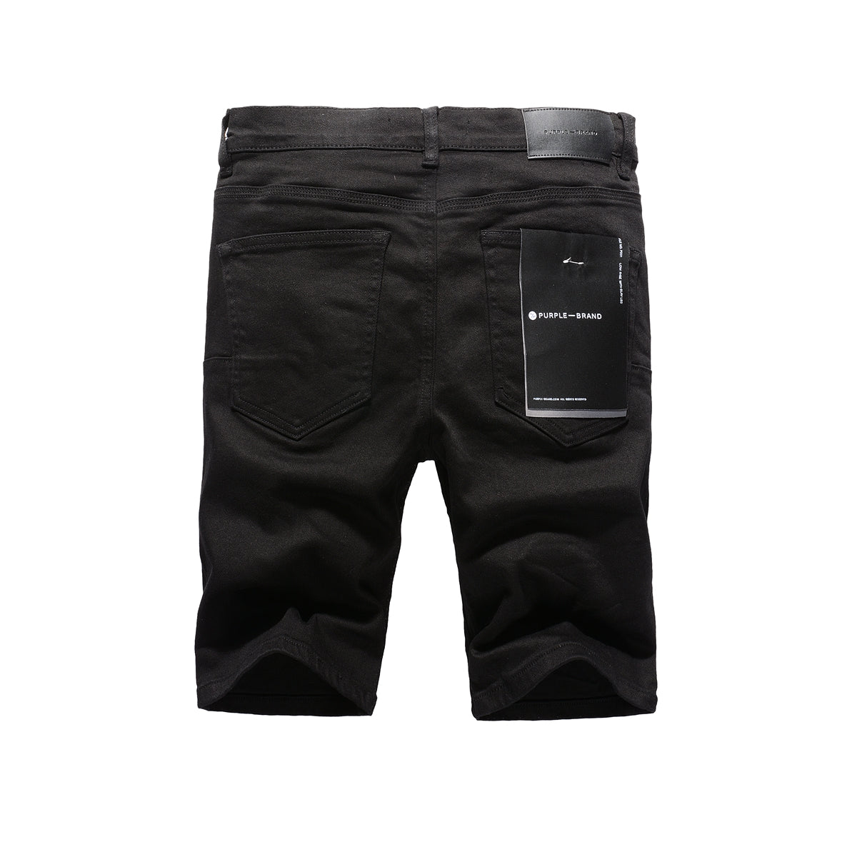 PURPLE Men Streetwear Denim Shorts Black Wash with Minimalist Design and Raw Hem 5023