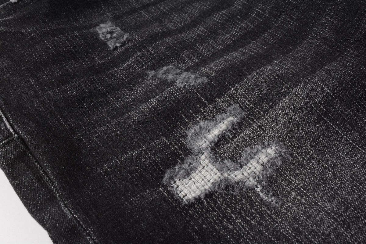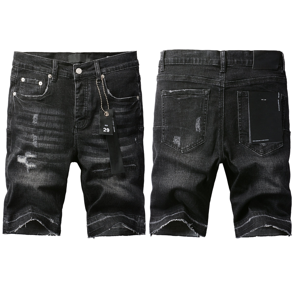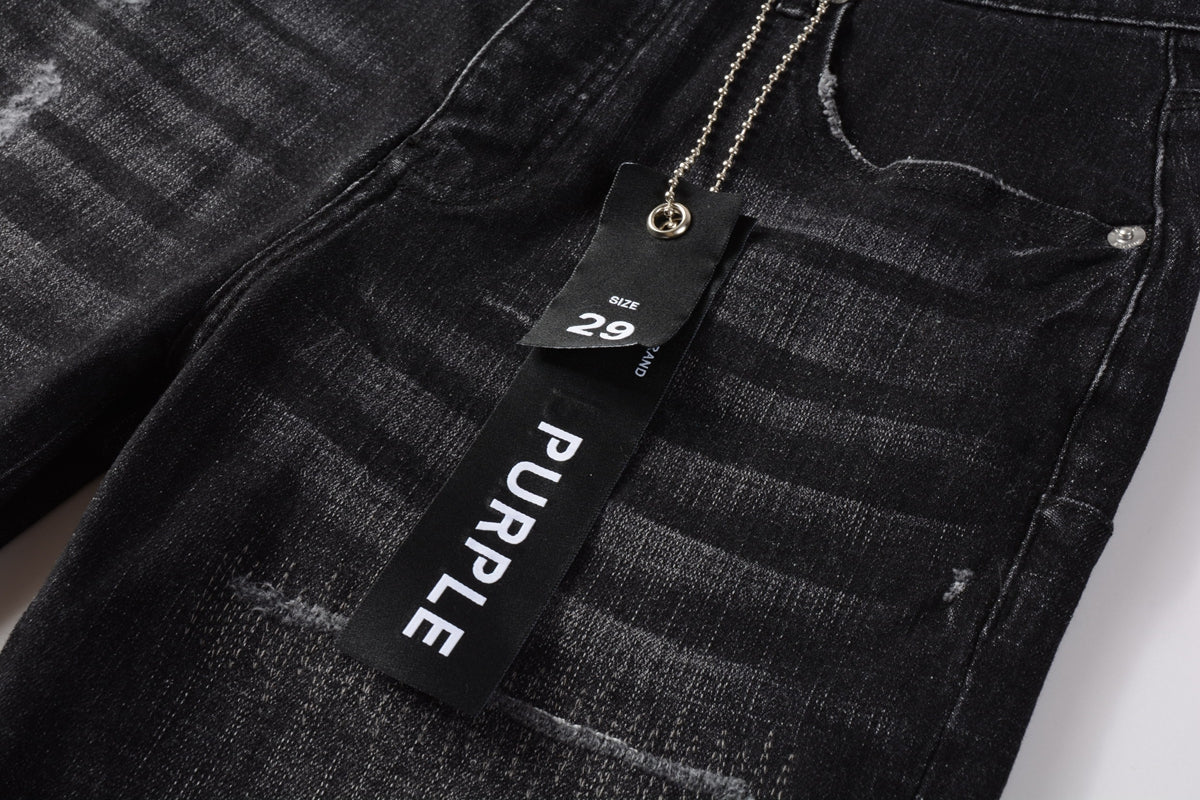 PURPLE Men Streetwear Denim Shorts Black Wash with Distressed Rips and Raw Hem 5083