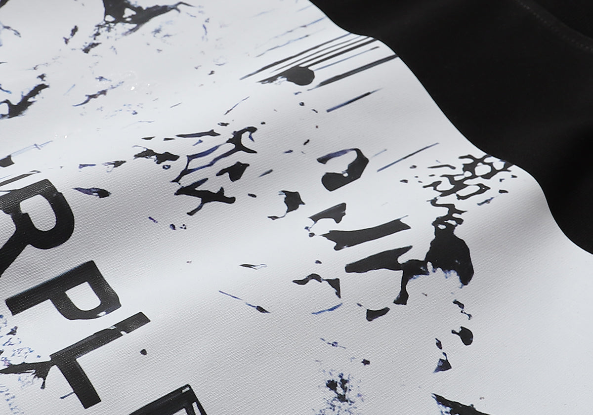 PURPLE Men Streetwear Short Sleeve Tee Black & White with Purple Brand Abstract Figure Print